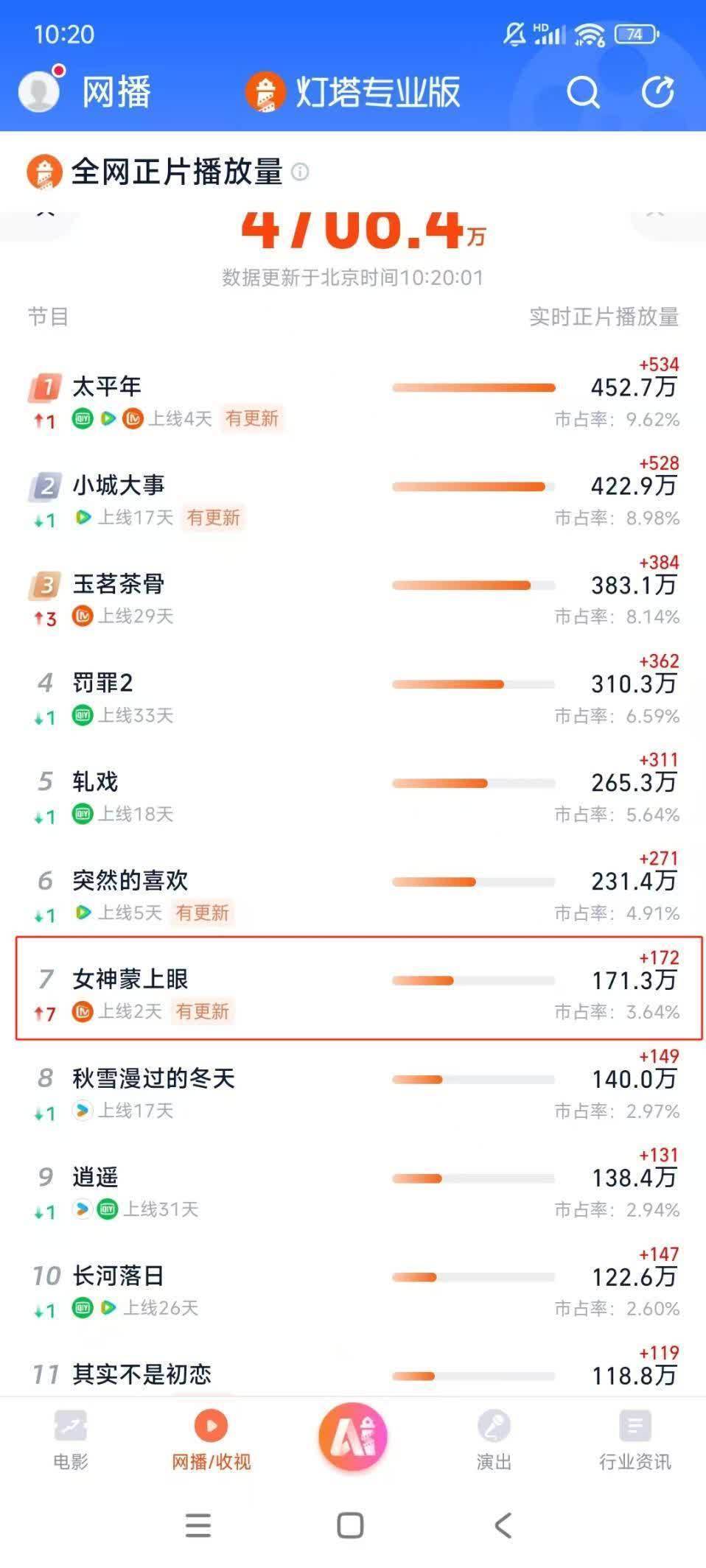 开播一天后,受限于平台和题材,收视收获不算太理思。