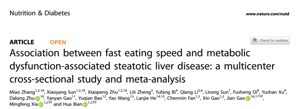 一项刊载于《Nutrition&Diabetes》杂志的商榷可信阐发:用餐速渡过快可能显耀加多罹患MASLD的风险[3]!