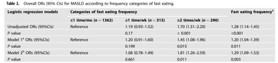 表2 凭证快速进食频率分类的MASLD总体ORs(95%CIs)